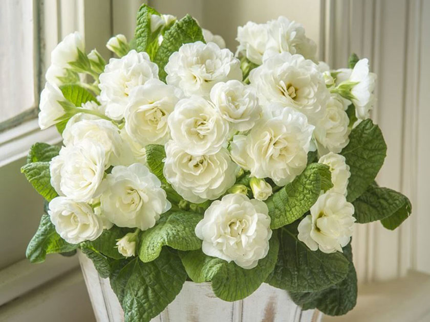 La Primula Belarina Snow aggiunge finalmente all'assortimento il colore bianco puro. Una leggerissima gola gialla non disturba la perfezione di questo bellissimo colore. La varietà giusta per iniziare le fioriture in un giardino bianco.