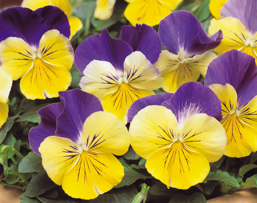 Viola del pensiero con fiori da 8 cm. Fiorisce in abbondanza già dall’autunno e riprende molto presto alla fine dell’inverno. Ogni pianta forma un bel ceppo di almeno una ventina di centimetri ricco di fiori. Difficile rende con una immagine la bellezza di questo fiore. Un accostamento decisamente riuscito tra giallo e azzurro/violetto. Pianta leggermente più alta delle altre.