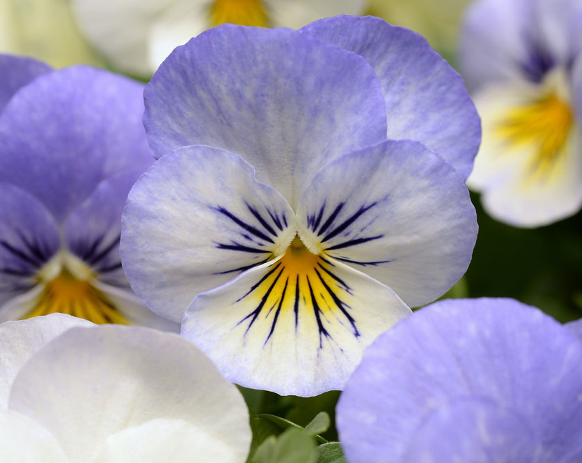 Aiuola di Viole a fiore piccolo in piena fioritura.