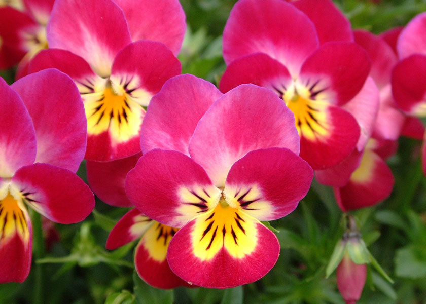 Aiuola di Viole a fiore piccolo in piena fioritura.