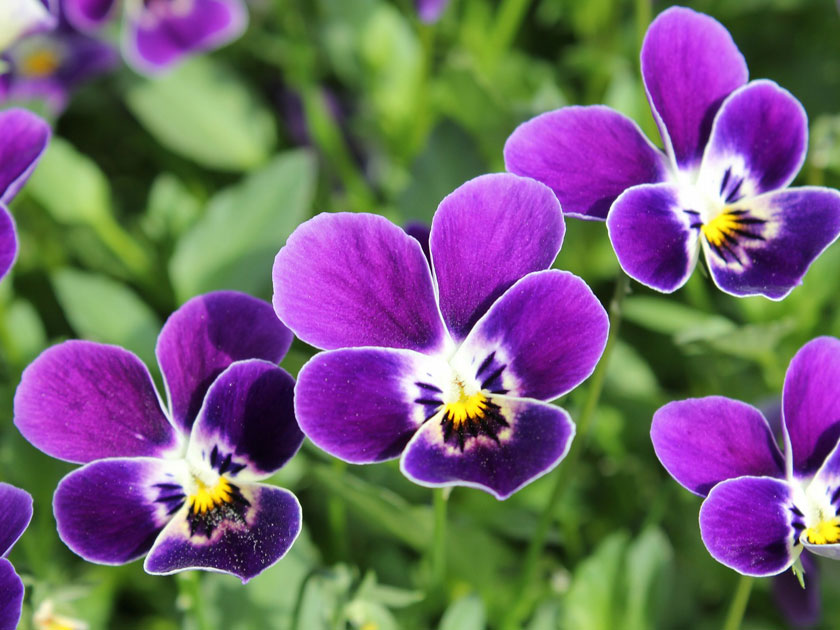Aiuola di Viole a fiore piccolo in piena fioritura.
