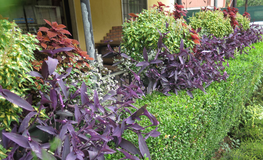 Può essere utilizzata anche in aiuola grazie alla sua rusticità, preferisce posizione soleggiate anche se si adatta alla mezz’ombra. Un colore così importante può essere utilizzato per mettere in evidenza altre piante a fogliame colorato decisamente più chiaro come alcuni Coleus o Ipomoea ricadenti. Di sicuro effetto è l’accostamento con la Lantana mini yellow o l’Euphorbia Diamond Frost.