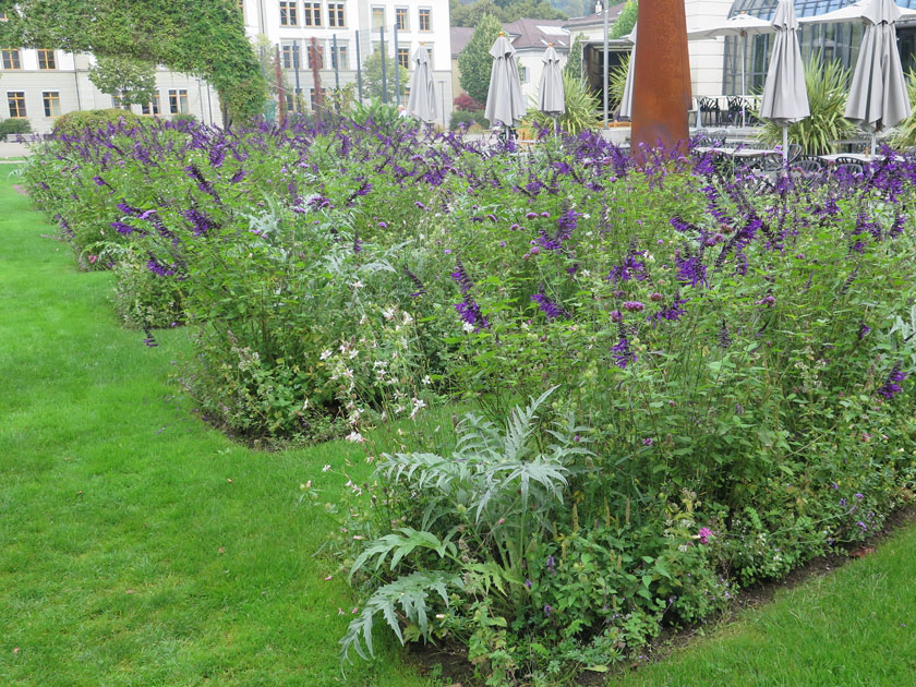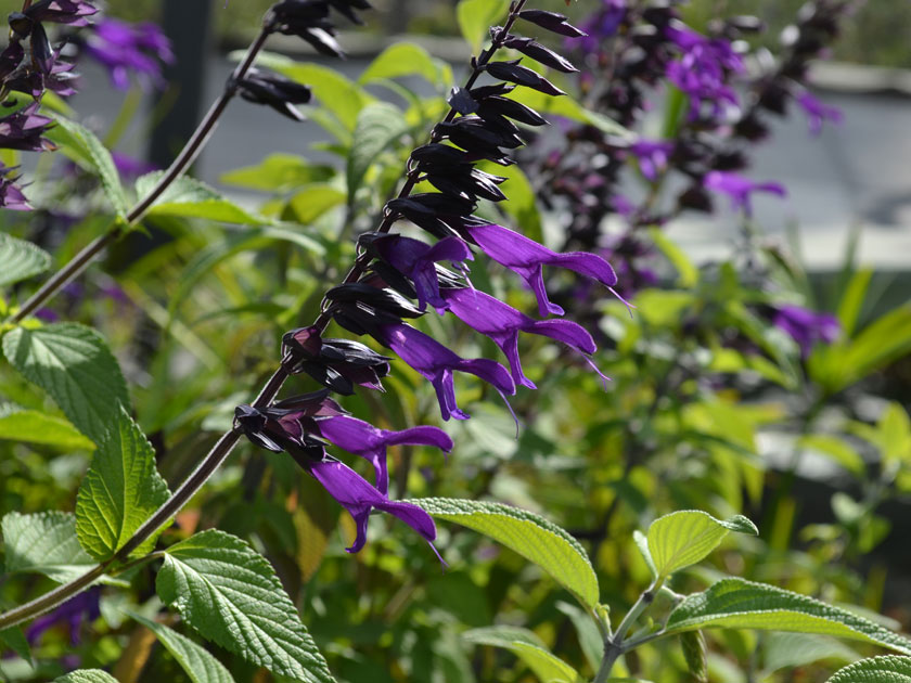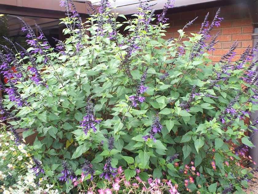 Salvia perenne a fioritura continua tutta l'estate. Pianta decisamente importante: raggiunge con facilità il metro e 50 di altezza. Grande amica delle api. Pianta resistente anche in luoghi poco irrigati.