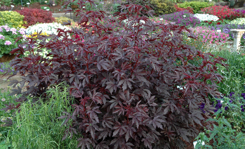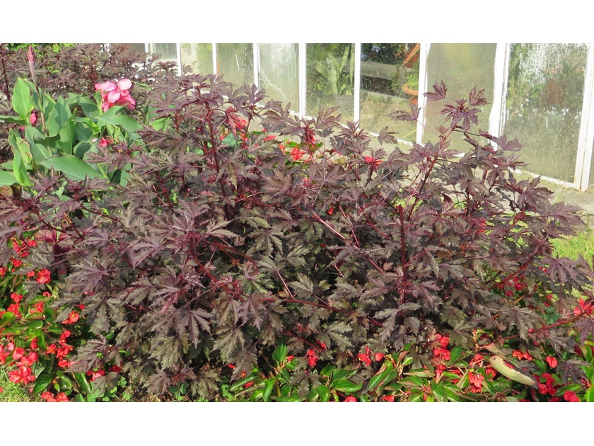 L’Hibiscus acetosella Mahogany splendor è una pianta annuale a fogliame colorato di veloce crescita: taglia XXL !. Il portamento è perfettamente colonnare, le foglie di un bellissimo color mogano assomigliano a quelle di un Acero giapponese.