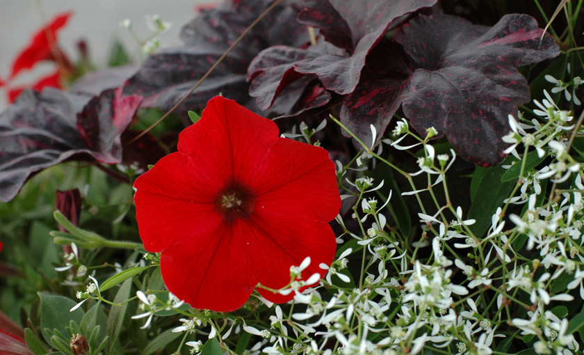 Abbinata, per esempio, alla Surfinia maschera in maniera perfetta il difetto di quest’ultima di spogliarsi nella parte più vecchia della pianta.