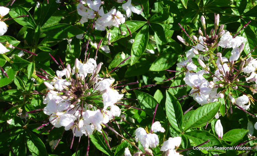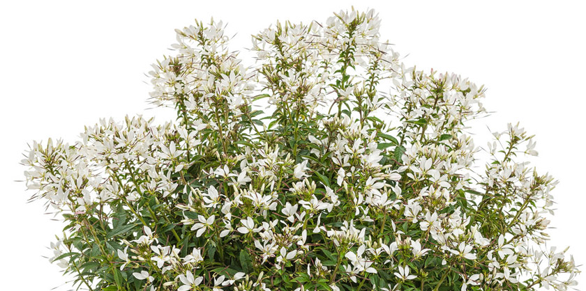 Il Cleome Senorita Blanca è una pianta destinata alle aiuole in piena terra oppure a contenitori veramente capienti. Fiorisce fino al gelo di un bel colore bianco. Pianta imponente che può superare il metro di altezza e quasi altrettanto di larghezza. Può anche rappresentare il centro o lo sfondo di un’aiuola piantata con altre piante con colori contrastanti.