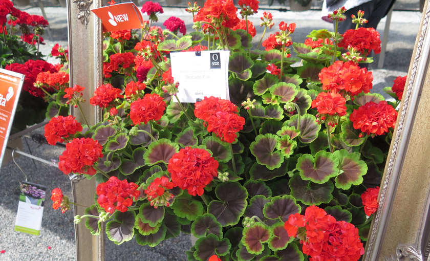Il Geranio Brocade Fire è una novità assoluta nel campo dei gerani eretti zonali. La sua particolarità è il fogliame marcatamente bicolore, caratterizzato da una parte molto scura, quasi nera, che contrasta con il bordo della foglia verde brillante. I fiori doppi sono di colore rosso arancio che risaltano sulla massa scura delle foglie.