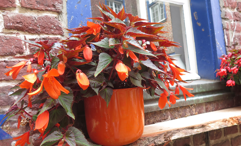 La Begonia Summer Wing ebony e orange è una nuovissima varietà di begonia ricadente della famiglia " Boliviensis". Pianta robusta da mezz'ombra (in grossi vasi può sfidare anche il sole pieno) con un fogliame di uno straordinario colore bronzo. Più appiattita rispetto alle altre Summer Wing è anche leggermente più corta, raggiunge comunque i 40-50 cm di lunghezza formando una cascata di fiori per tutta l’estate.