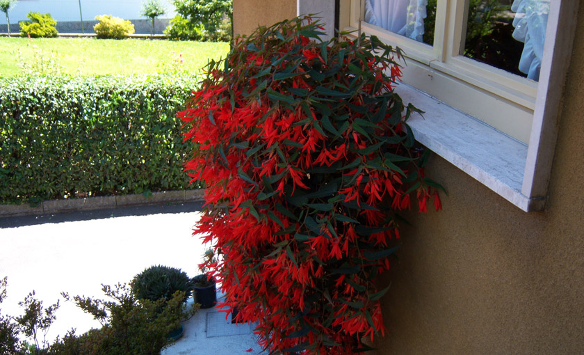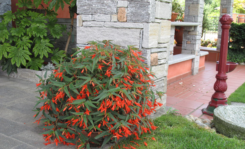 La Begonia Bonfire è la più classica begonia della tipologia "Boliviensis". Ha una grande adattabilità a tutte le esposizioni: dall’ombra al pieno sole senza che cambino i risultati. Fiori rosso arancio su una vegetazione vigorosissima. Può ricadere anche oltre una ottantina di centimetri.