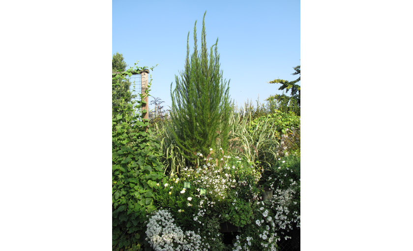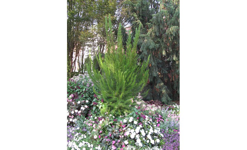 In un’aiuola può rappresentare il punto focale ma può essere utilizzata anche solitaria in un grosso vaso sfruttando l’effetto scenico di una grossa colonna verde.