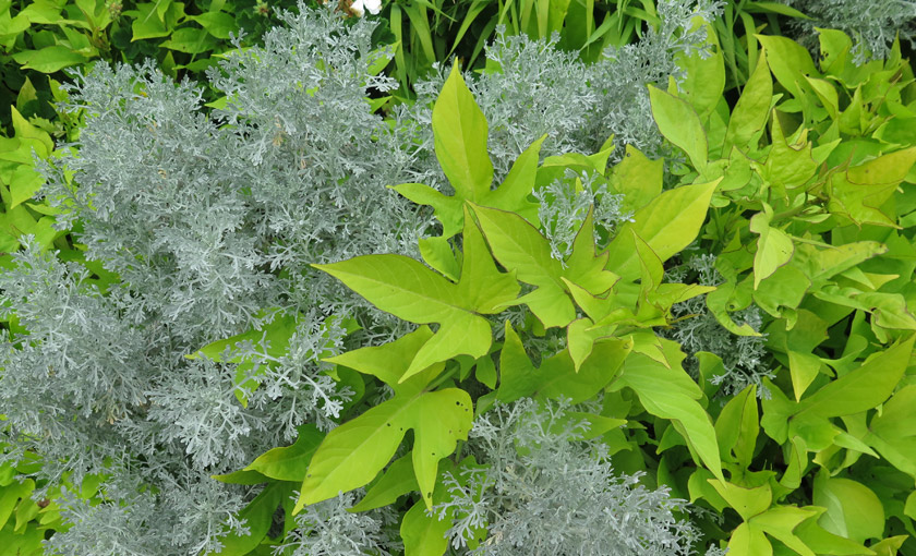 Le ipomoee sono piante importantissime per la decorazione di balconi e di facciate. La loro vegetazione raggiunge anche il metro e cinquanta di lunghezza con foglie di forme e di colori diversi. Pianta versatile che sopporta tutte le esposizioni possibili solo con piccolissime differenze di risultato per quanto riguarda la lunghezza finale. La serie Sweet Caroline si distingue per le foglie frastagliate e per l’abbondante crescita.