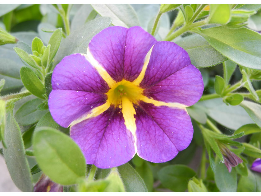 La Chalibrachoa Rave violet rappresenta l'introduzione dei fiori bicolori stellati nel mondo delle Calibrachoa. Bellissimo è il risultato del contrasto di questo colore lavanda intenso con gola gialla e il bianco della stella. Particolarmente indicato per esemplari isolati.