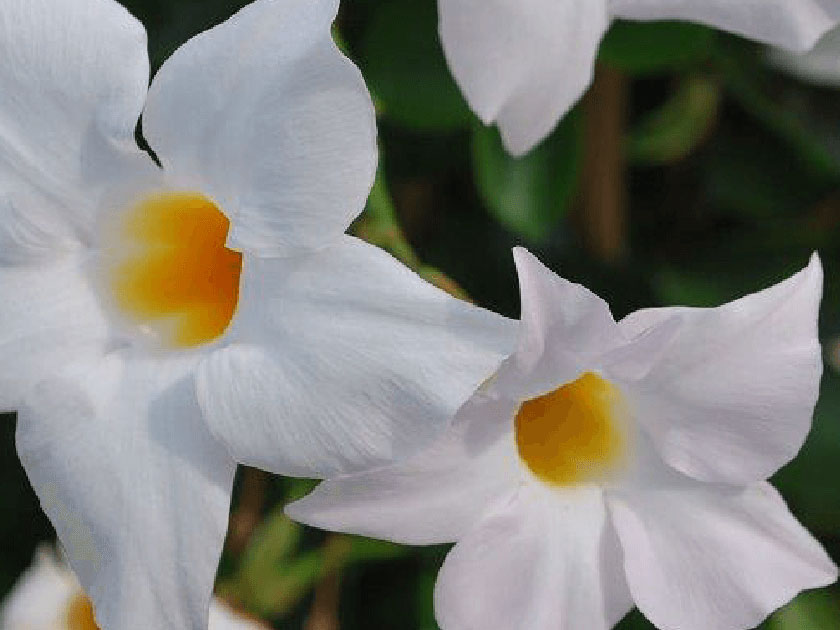 La Dipladenia Sundaville Classic white è una bella pianta compatta che fiorisce senza interuzzione per tutta l'estate coprendosi di fiori bianchi.