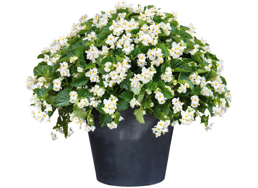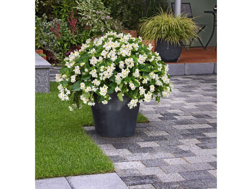 La Begonia Big white green leaf è una begonia gigante a portamento eretto da pieno sole e mezz'ombra. Da maggio a novembre si aprono in continuazione fiori bianchi sulla vegetazione di un bel verde lucido . Può essere utilizzata sia in aiuola che in grossi vasi.
