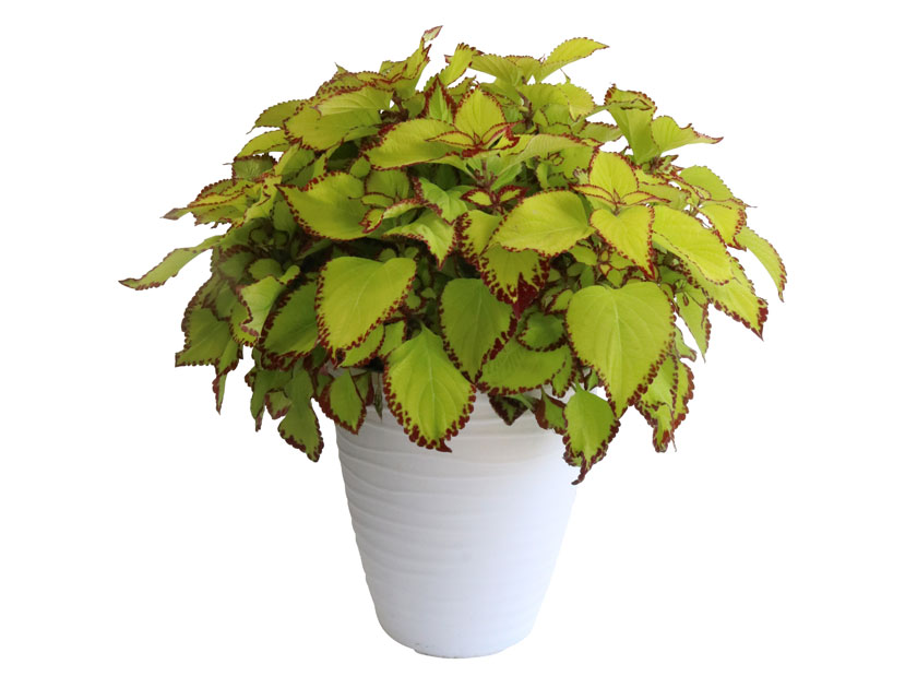 Interessante varietà di coleus da talea dalla foglia verde chiaro e leggero bordo scuro.