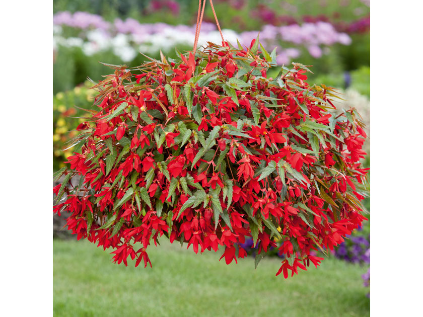 La Begonia Bellavista è la più robusta varietà di begonia ricadente della famiglia " Boliviensis". Piante normalmente da mezz'ombra ,in grossi vasi può sfidare anche il sole pieno con un fogliame di un bel verde brillante che fa da sfondo ai classici fiori a campanella rossi. Ricade tra i 60 e 70 cm sviluppando anche in altezza una ventina di centimetri assumendo dunque un bel aspetto vaporoso.